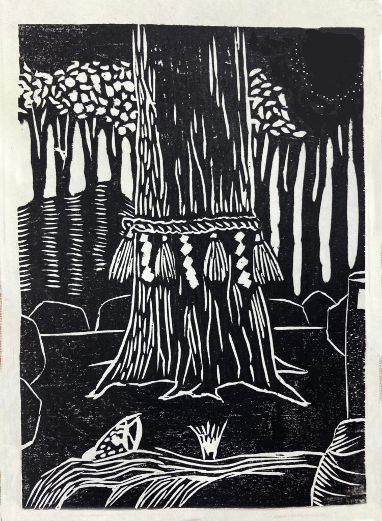Sennen ki (Mitoku-san). 2025 woodblock print.